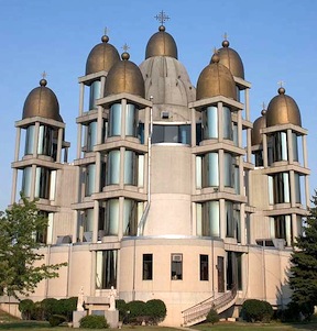 I am probably the only person whose first thought upon viewing this building is: what an amazing disguise for missile silos! Of course, one factor for my reaction is the clearly Russian/Ukrainian shape of the entire structure. A peculiar response to the picture, right? And yet . . . without inspecting the tubes, who can say with certainty whether or not my first reaction may have been accurate?