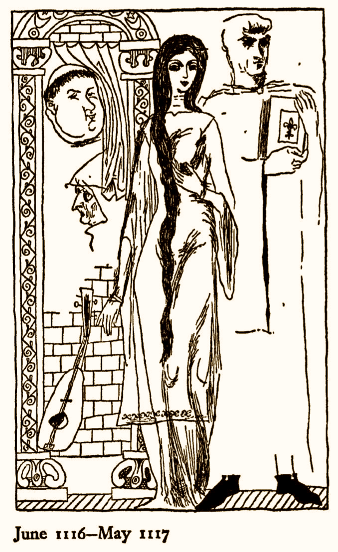 A novel entitled Peter Abelard was published in 1933 by Helen Waddell. It is available at Internet Archive for those who prefer their history via the medium of historical fiction. The illustration below, apparently imitating a fading fresco, comes from that volume.