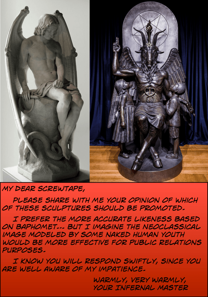 This illusion plays directly into his purposes, as C.S. Lewis described in The Screwtape Letters. Screwtape, a senior demon, instructs his protégée Wormwood in the preferred method of dispelling human wariness about Evil.