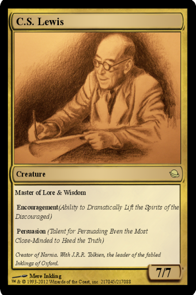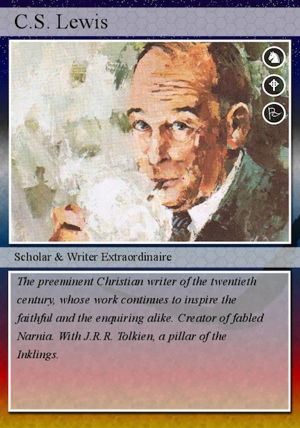 It was while thinking about my Narnia cards when I got the idea to see if there was an online mechanism for making one’s own playing cards. I was toying with the idea of fashioning a C.S. Lewis card to illustrate one of my posts.