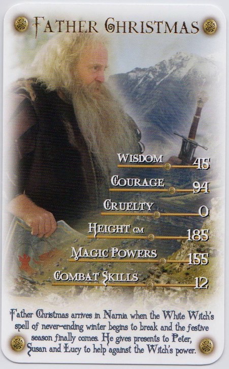 Many of you, especially Europeans, will be familiar with a gaming product that arose in the United Kingdom. They are called Top Trumps, and the cards come in a wide variety of themes. One set that I own is Narnia, from which the image at the top of this page comes.