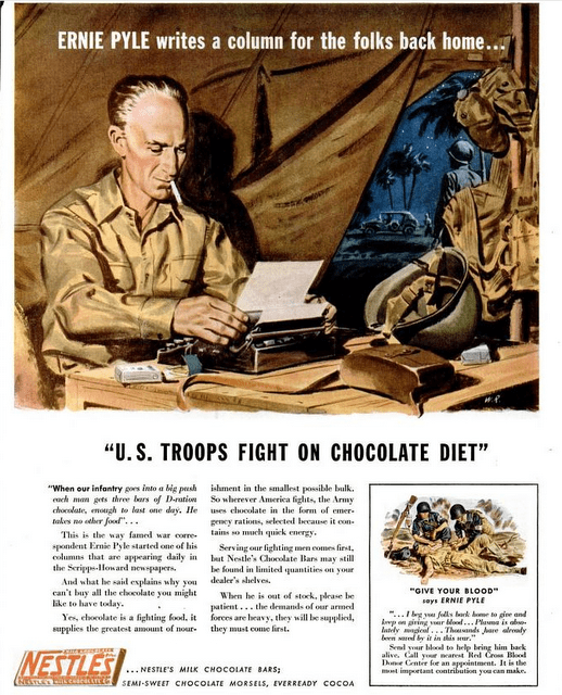 My research was, in fact, prompted by a recent post on “Chocolate in WWII” in Pacific Paratrooper. (It is one of the very best military blogs on the internet.) They describe how the military approached a major American confectioner with a simple list of requirements (the last one is best appreciated by older veterans).